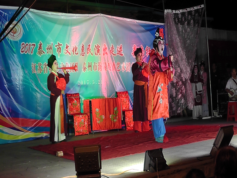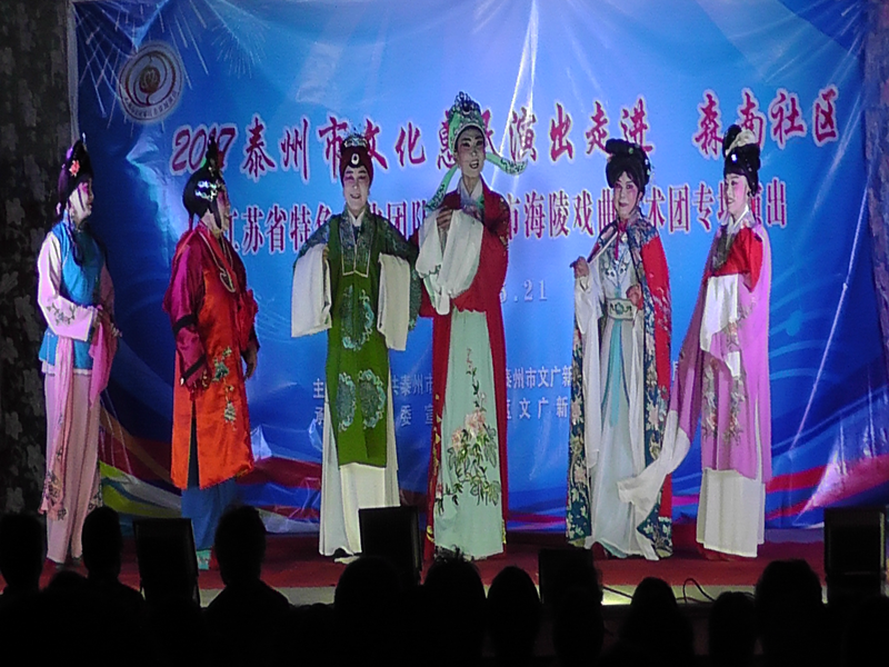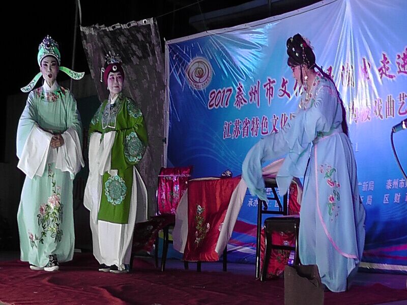 泰州市海陵戏曲艺术团于2017年5月21日晚19时30分在海陵区城西街道森南社区广场演出大型优秀传统扬剧——《逃婚的新娘》。我团参演人员25人。由于森南社区积极宣传,前来看戏的群众400余人,人民需要文化,文化需要人民,演出现场气氛热烈,观众掌声不断,演出圆满成功。这更加激起我们为老百姓排好戏、演好戏、唱好戏。让泰州市文化惠民演出活动锦上添花,更上一层楼。