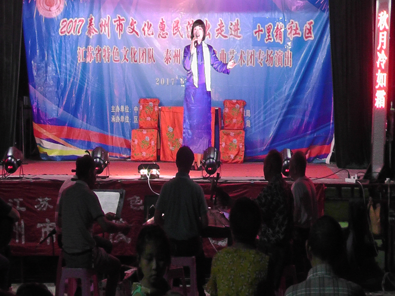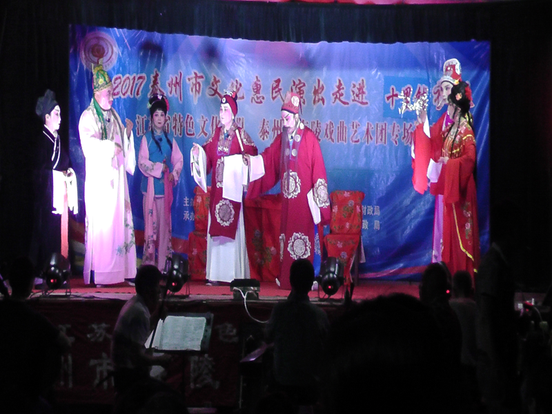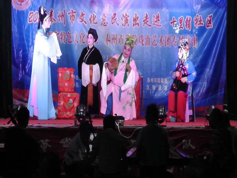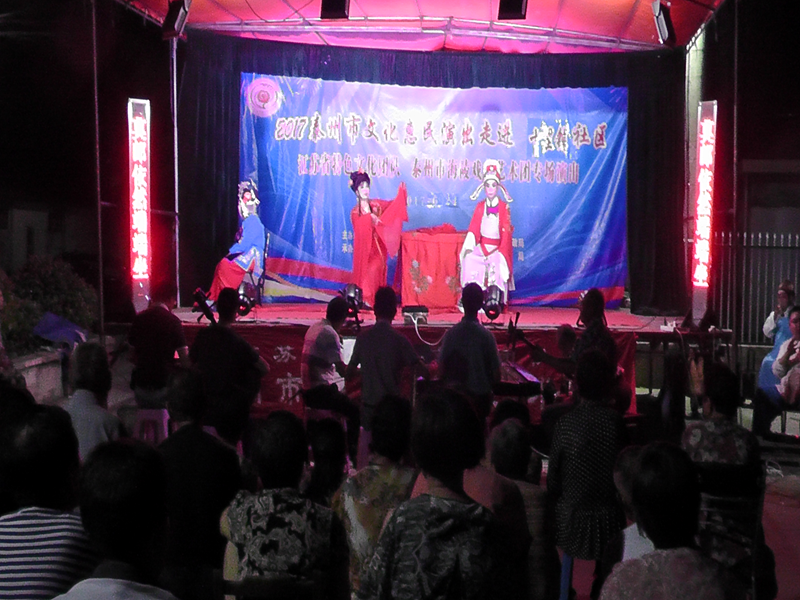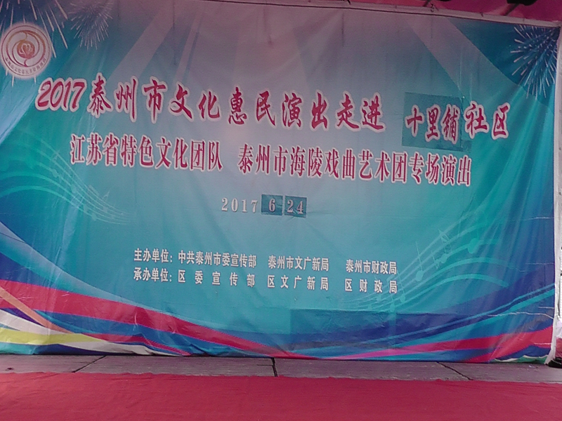 泰州市海陵戏曲艺术团于2017年6月24日晚7时30分在京泰路街道十里铺社区广场演出大型优秀传统扬剧——《真假新郎》。我团参演人员25人。由于十里铺社区积极宣传,前来看戏的群众300余人,人民需要文化,文化需要人民,演出现场气氛热烈,观众掌声不断,演出圆满成功。这更加激起我们为老百姓排好戏、演好戏、唱好戏。把泰州市文化惠民演出活动锦上添花,更上一层楼。