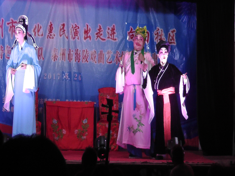 泰州市海陵戏曲艺术团于2017年6月26日晚7时30分在凤凰街道向阳社区广场演出大型优秀传统扬剧——《真假新郎》。由于向阳社区积极宣传,前来看戏的群众400余人,人民需要文化,文化需要人民,演出现场气氛热烈,观众掌声不断,演出圆满成功。这更加激起我们为老百姓排好戏、演好戏、唱好戏。把泰州市文化惠民演出活动锦上添花,更上一层楼。
