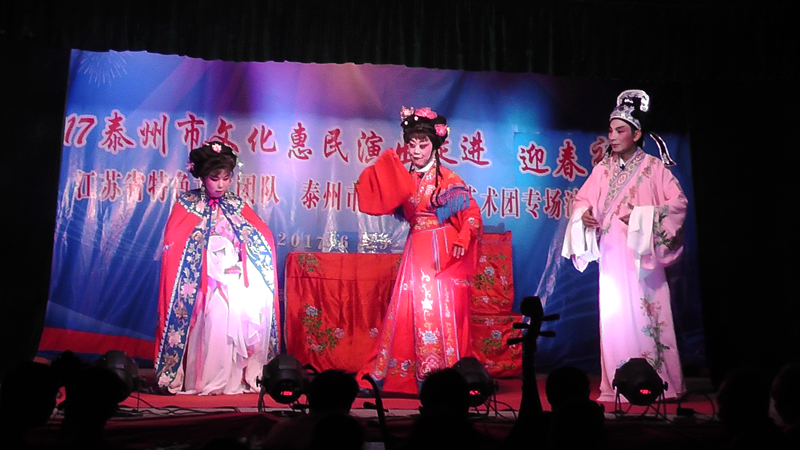 泰州市海陵戏曲艺术团于2017年6月29日晚7时30分在城东街道迎春社区广场演出大型优秀传统扬剧——《逃婚的新娘》。我团参演人员25人。由于迎春社区积极宣传,前来看戏的群众100余人,人民需要文化,文化需要人民,演出现场气氛热烈,观众掌声不断,演出圆满成功。这更加激起我们为老百姓排好戏、演好戏、唱好戏。把泰州市文化惠民演出活动锦上添花,更上一层楼。