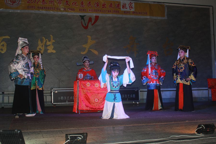 2017年7月3日晚,应海陵区九龙镇姚家社区邀请,小雨天艺术团走进姚家社区百姓大舞台,为基层社区居民演出了一场经典传统扬剧全本戏《恩仇记》。为了保证社区群众的欣赏效果,艺术团采用高级设备,下午3点,社区主要领导和小雨天艺术团就来到演出现场,为晚上的演出做好了充分准备。节目晚上正点准时开演,现场300多的社区观众看的是兴致勃勃,高潮之时的广场更是掌声雷动,很多观众都说,看到这样的正规化演出,才是感觉到了真正的文化惠民。因现场社区观众的盛情,正本演出前还添续了折子戏段加唱,整场演出持续了近3小时之多...