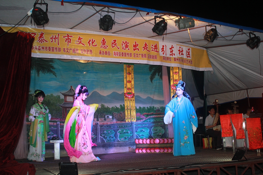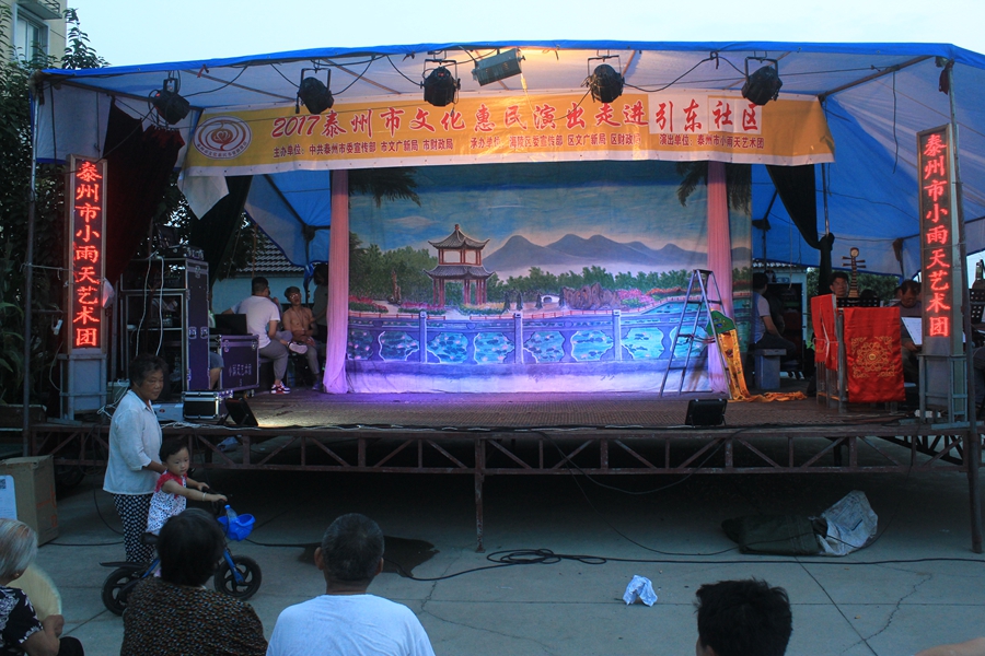 2017年7月4日晚,应海陵区城西街道引东社区邀请,小雨天艺术团走进引东社区事先安排的场地,为基层社区居民演出了一场经典传统扬剧全本戏《宝莲灯》。为了保证社区群众的欣赏效果,按社区领导安排,艺术团动用了戏曲演出专用大舞台,下午5点,社区主要领导和小雨天艺术团就来到演出现场,为晚上的演出做好了充分准备。节目晚上正点准时开演,现场500多的社区观众看的是兴致勃勃,高潮之时的广场更是掌声雷动,很多观众都说,看到这样的正规化演出,才是感觉到了真正的文化惠民。因现场社区观众的盛情,正本演出后还添续了折子戏段加唱,整场演出持续了近3小时之多...