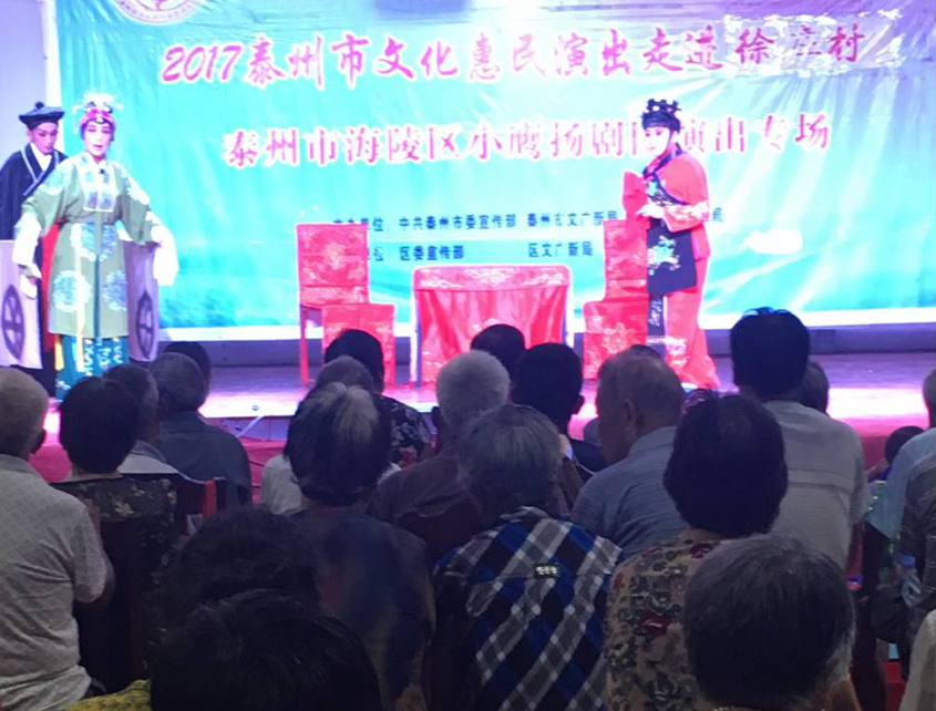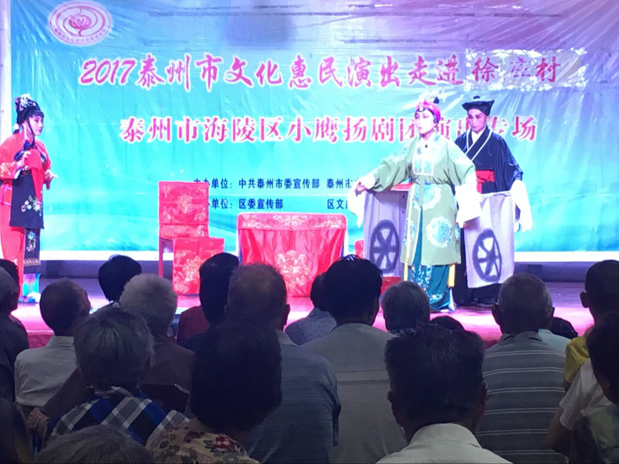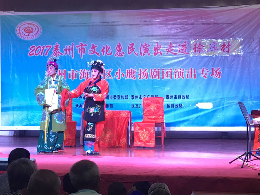 2017泰州市文化惠民演出走进高港区口岸街道徐庄村,海陵区小鹰扬剧团专场演出,2017年7月11日晚上在高港区口岸街道徐庄村篮球场成功举办。经典的扬剧折子戏博得了观众的阵阵掌声。演出很成功!感谢社区领导提供全方位的服务!