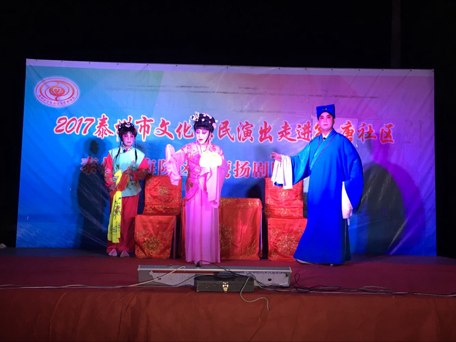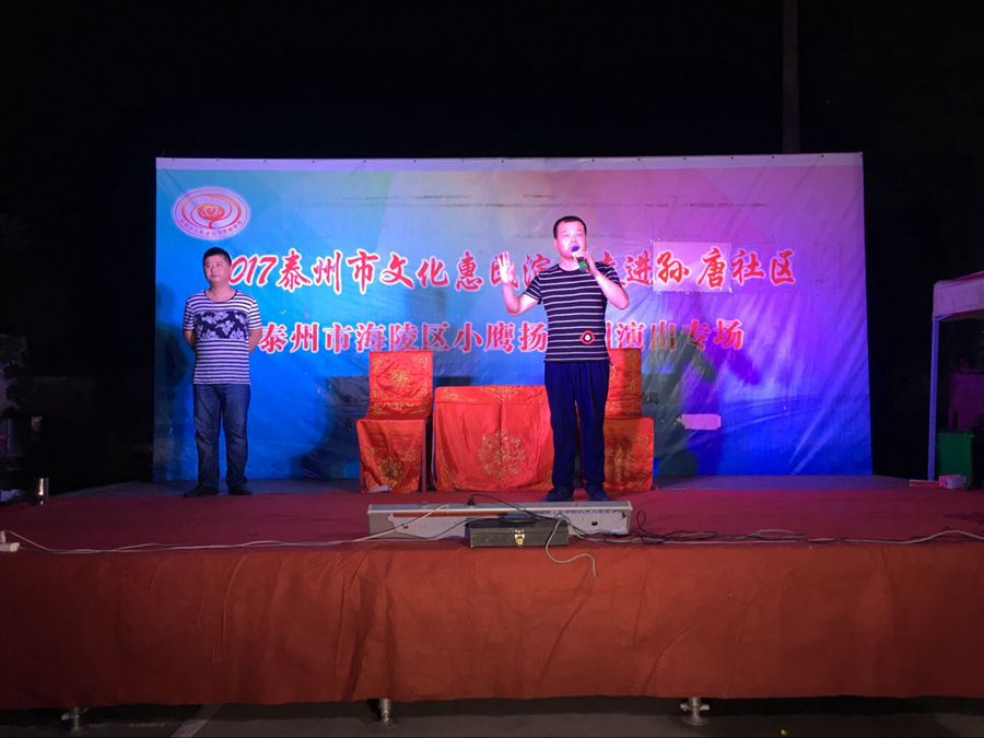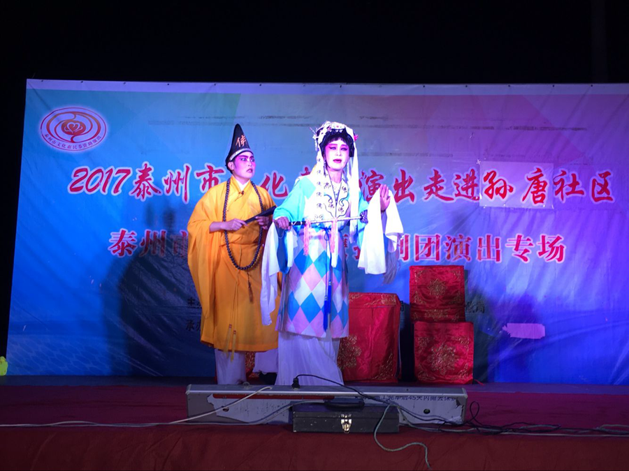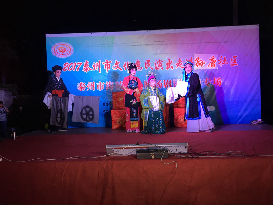 2017泰州市文化惠民演出走进海陵区京泰街道孙唐社区,海陵区小鹰扬剧团专场演出,2017年7月8日晚上在海陵区京泰街道孙唐社区文化广场成功举办。经典的扬剧折子戏博得了观众的阵阵掌声。演出很成功!感谢社区领导提供全方位的服务!