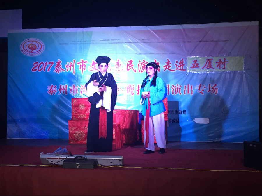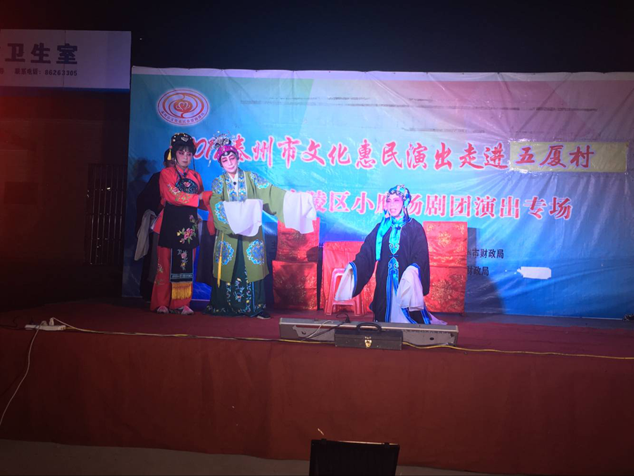 2017泰州市文化惠民演出走进海陵区九龙镇五厦村,海陵区小鹰扬剧团专场演出,2017年7月9日晚上在海陵区九龙镇五厦村文体广场成功举办。经典的扬剧折子戏博得了观众的阵阵掌声。天气虽然很热,但是大爷大妈们一直坚持看到最后。演出很成功!感谢社区领导提供全方位的服务!