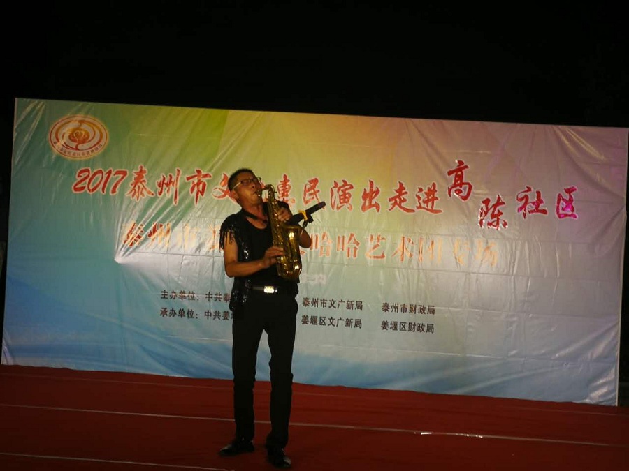 7月14日,姜堰区笑哈哈艺术团文化惠民专场演出走进罗塘街道髙陈社区。晚上7点30分演出在凤凰广场准时开始,现场表演的节目有舞蹈《红红火火大中华》、莲花落说唱《莲花一打笑哈哈》、方言韵白《回乡》、萨克斯演奏《北国之春》、喜剧小品《老娘舅》、天津快板《有话好好说》、相声《趣说泰州话》、越剧梁山伯与祝英台选段《十八相送》、表演唱《财政惠民乐农家》、以及独唱等11种形式、12个节目。整台演出时长115分钟,观众约700人左右。节目形式多样、内容丰富,尤其相声、快板、喜剧小品、方言韵白等语言类特色节目赢得了观众的阵阵笑声和掌声,受到了社区干部、群众的一致好评。