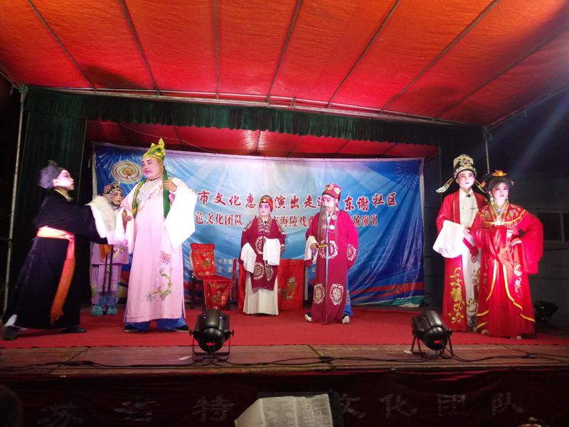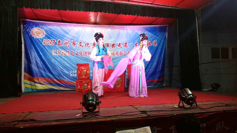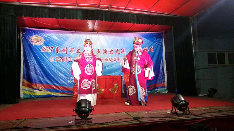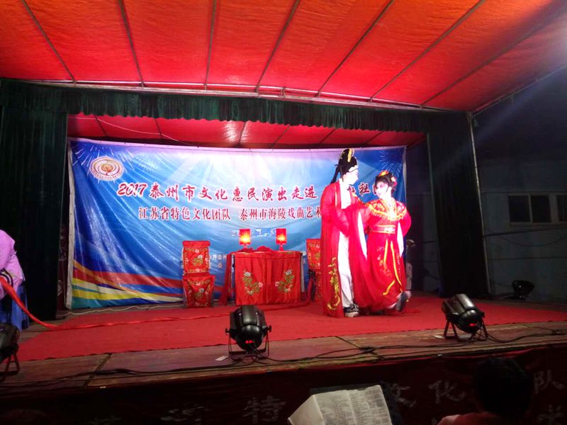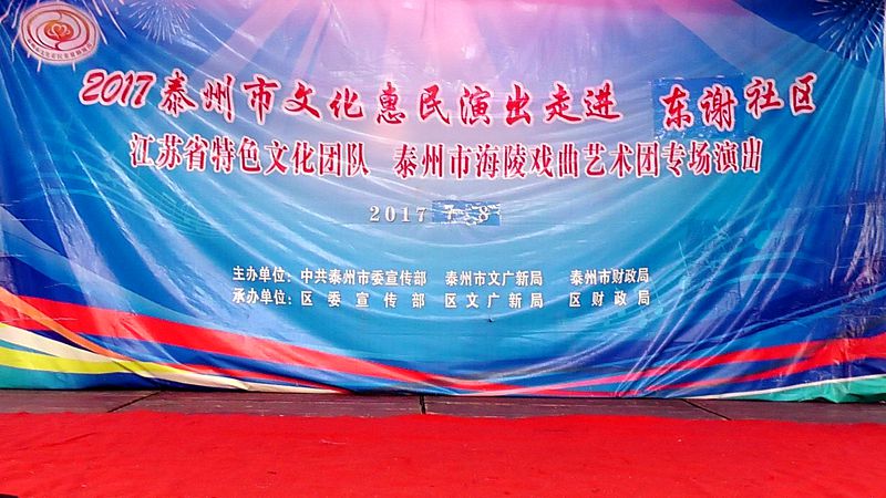 泰州市海陵区戏曲艺术团于2017年7月8日晚7时30分在凤凰街道东谢社区广场演出大型优秀传统扬剧——《真假新郎》。我团参演人员25人,由于东谢社区积极宣传,前来看戏的群众200余人。人民需要文化,文化需要人民,演出现场气氛热烈,观众掌声不断,演出圆满成功。这更加激起我们为老百姓排好戏、演好戏、唱好戏。把泰州市文化惠民演出活动锦上添花,更上一层楼。