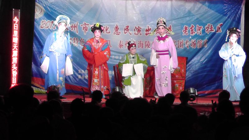 泰州市海陵戏曲艺术团于2017年7月11日晚7时30分在城东街道老东河社区广场演出大型优秀传统扬剧——《逃婚的新娘》。我团参演人员25人。由于老东河社区积极宣传,前来看戏的群众300余人,人民需要文化,文化需要人民,演出现场气氛热烈,观众掌声不断,演出圆满成功。这更加激起我们为老百姓排好戏、演好戏、唱好戏。把泰州市文化惠民演出活动锦上添花,更上一层楼。