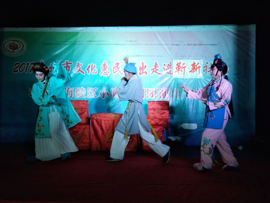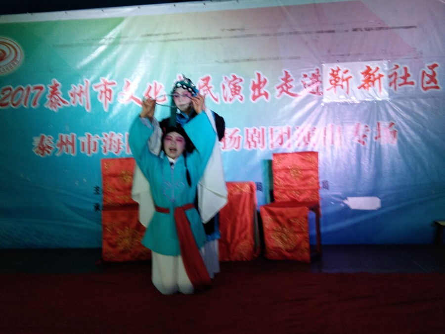 泰州市海陵区小鹰扬剧团于2017年7月15日晚上走进医药高新区明珠街道靳新社区进行文化惠民演出。虽然气温很高,丝毫没有减弱观众看扬剧的激情,经典的扬剧折子戏博得了观众的阵阵掌声。演出很成功!感谢社区领导提供全方位的服务!