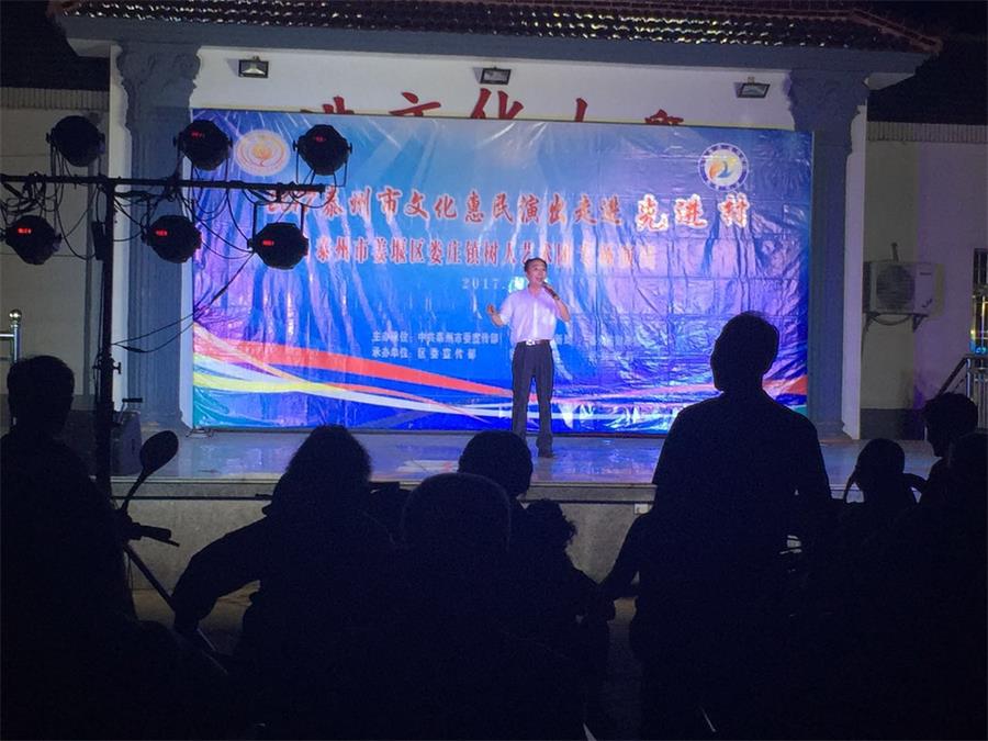 7月20日晚上七点三十分,娄庄镇树人艺术团惠民演出来到娄庄镇先进村,演出的内容丰富,有戏剧、小品、表演唱、舞蹈等节目,节目时长110分钟,观众200多人,整场掌声热烈,赢得观众的好评。