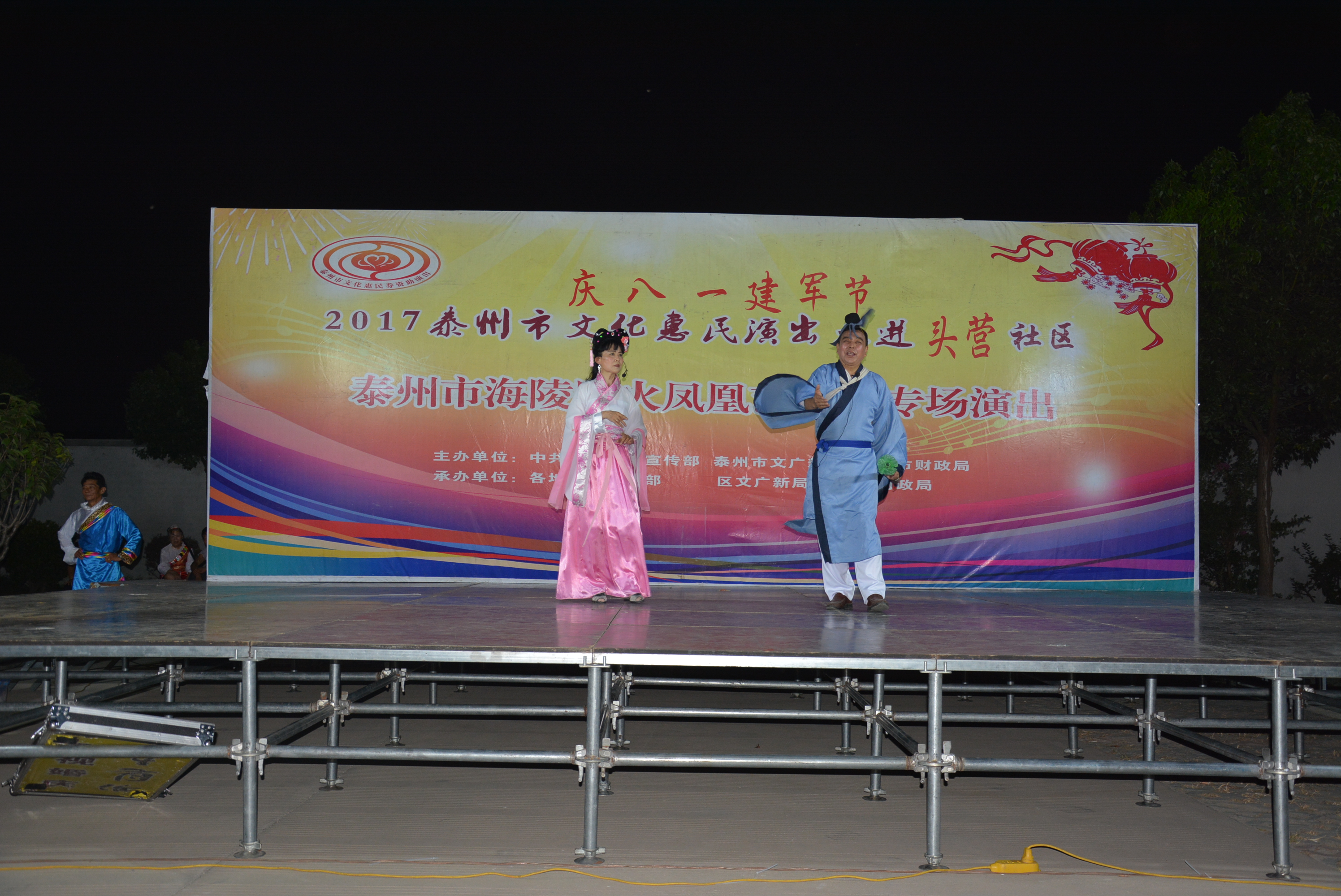 37℃、38℃、39℃、40℃……连日来,高温席卷江苏大地。江苏省气象台发布高温红色预警信号,泰州的最高气温达40℃以上。在这高温酷热日子里,与气温一同攀升的还有火凤凰艺术团惠民演出的热情。2017年7月25日下午,火凤凰艺术团惠民演出走进城西街道头营社区。天气虽然很热,但是在主办方认真准备,演职人员高度配合下,头营社区的居民们携幼带老从开始到结束,热情一直不减,演出现场气氛热烈,观众掌声不断,演出圆满成功。