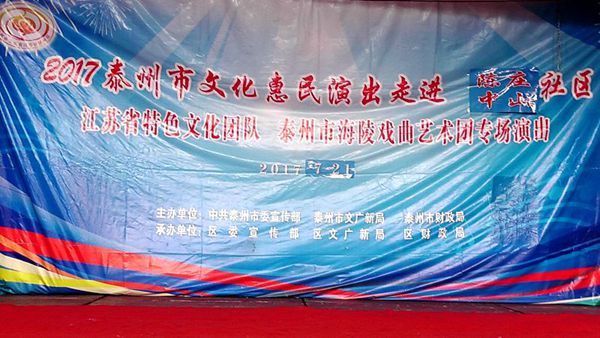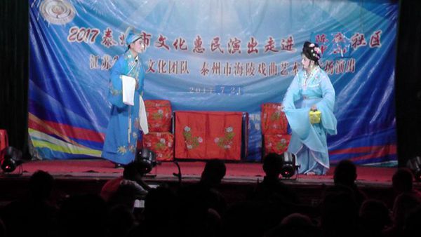 泰州市海陵区戏曲艺术团于2017年7月21日晚7点30分在医药高新区凤凰街道陈庄社区文化广场演出大型优秀传统扬剧——《逃婚的新娘》。我团参演人员25人,由于陈庄社区积极宣传,前来看戏的群众近200人,人民需要文化,文化需要人民,演出现场气氛热烈,观众掌声不断,演出圆满成功。这更加激起我们为老百姓排好戏、演好戏、唱好戏。把泰州市文化惠民演出活动锦上添花,更上一层楼。