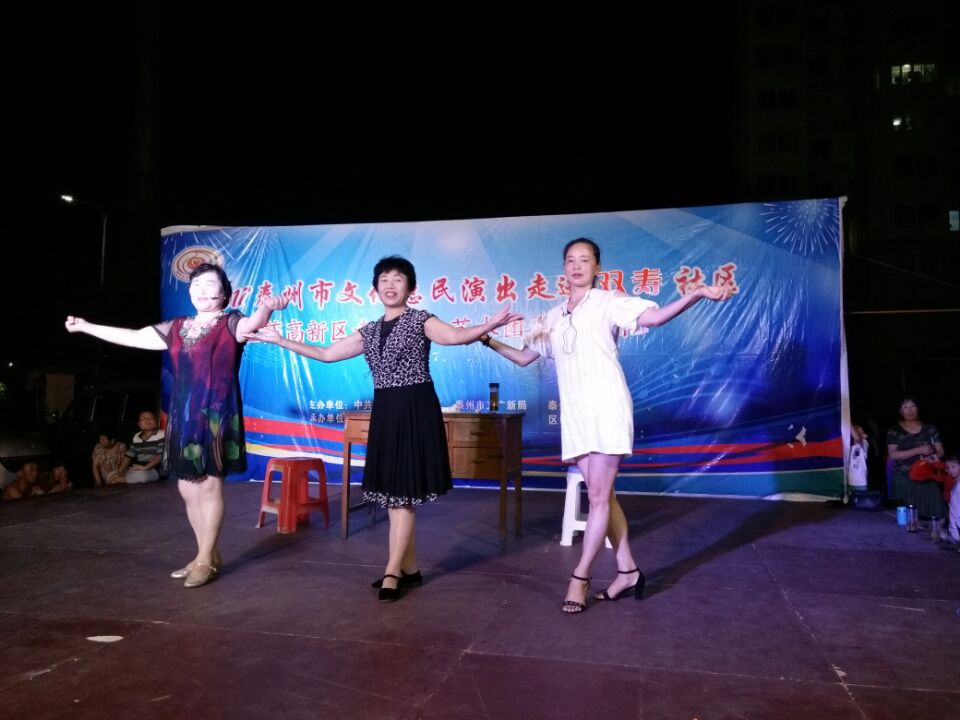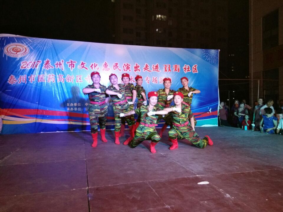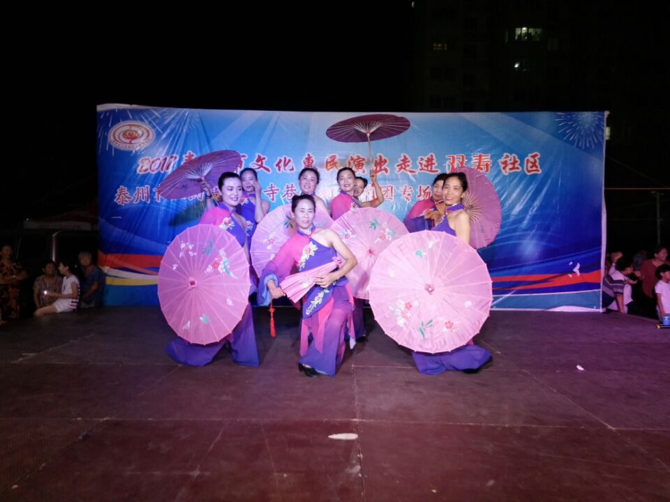 8月1日是建军节,寺巷彩虹艺术团文化惠民专场演出走进寺巷街道小寿社区。晚上7点半在小寿社区广场准时开始,现场表演节目由音乐鼓拉开序幕,紧接着是女生独唱、舞蹈《红色娘子军》《水乡泰州美》 、表演说唱、小品、戏曲选段等等,精彩的节目一个接一个,观众们掌声,喝彩声不断,寺巷彩虹艺术团演员们的精湛表演,让居民们陶醉在优美的旋律中和欢快的舞步中,最后在《难忘今宵》中结束这场演出,得到了大家的一致好评!