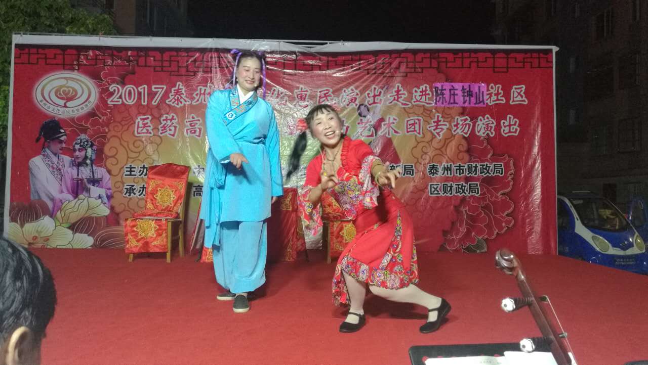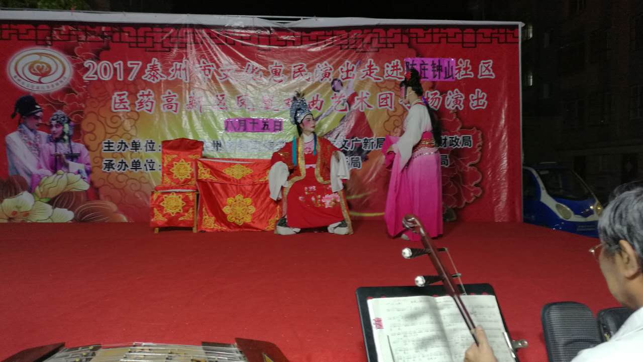 2017年8月15日晚,医药高新区凤凰戏曲艺术团文化惠民演出走进凤凰街道陈庄社区,在全体演出人员的精心准备下,给陈庄社区的居民带来了一场精彩的戏曲演出。演出受到了当地群众的集体好评,演出过程中掌声不断,欢笑不断,当地群众还要求我们加演节目,团队也满足了群众的需求。