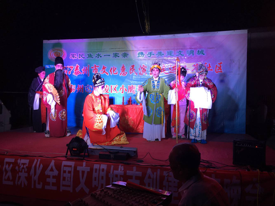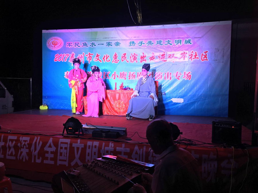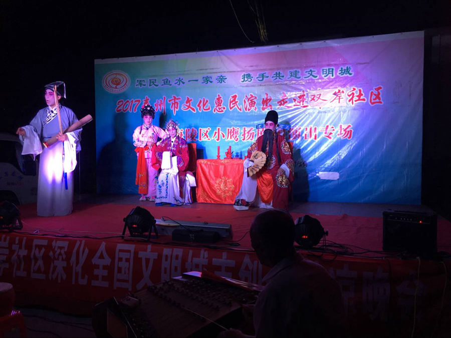 2017泰州市文化惠民演出走进海陵区苏陈镇双岸社区,海陵区小鹰扬剧团专场演出,2017年8月11日在海陵区苏陈镇双岸文化广场成功举办。本场演出剧目为传统扬剧整本戏《珍珠塔》,演到精彩之处观众不时暴以热烈的掌声。演出很成功!感谢社区领导提供全方位的服务!