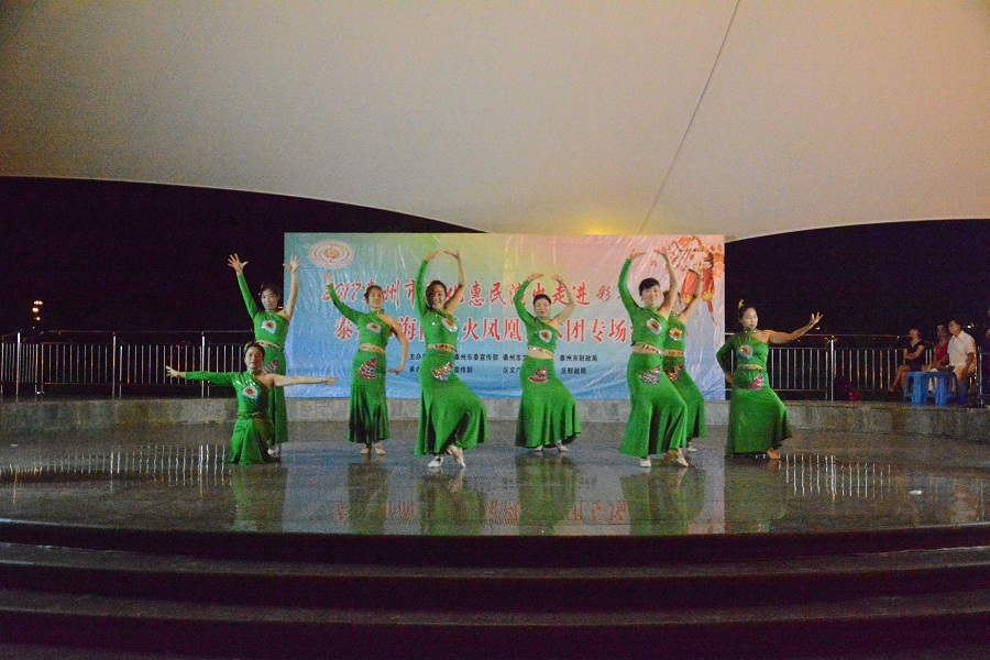应城北街道彩衣社区邀请,火凤凰艺术团为彩衣社区居民带来了一场精彩纷呈的文艺演出。为了保证社区群众的欣赏效果,按社区领导安排,演出地点设在滨河广场,傍晚,依恋着美丽的城河,演出场地灯光灿烂,河面上送来了阵阵凉风。演出在7点30分准点开始,现场的社区观众兴致勃勃,火凤凰艺术团给社区居民们带来了16个精彩节目,异域风情的拉丁舞、傣族舞、桑巴舞,衣袂飘飘的古典舞,戏剧选唱,独唱,诗歌朗诵,一个比一个精彩,博得现场观众的阵阵喝彩和掌声。近2个小时的倾情演出,给社区居民带来了愉悦和欢笑,歌笑声响彻夜空....
