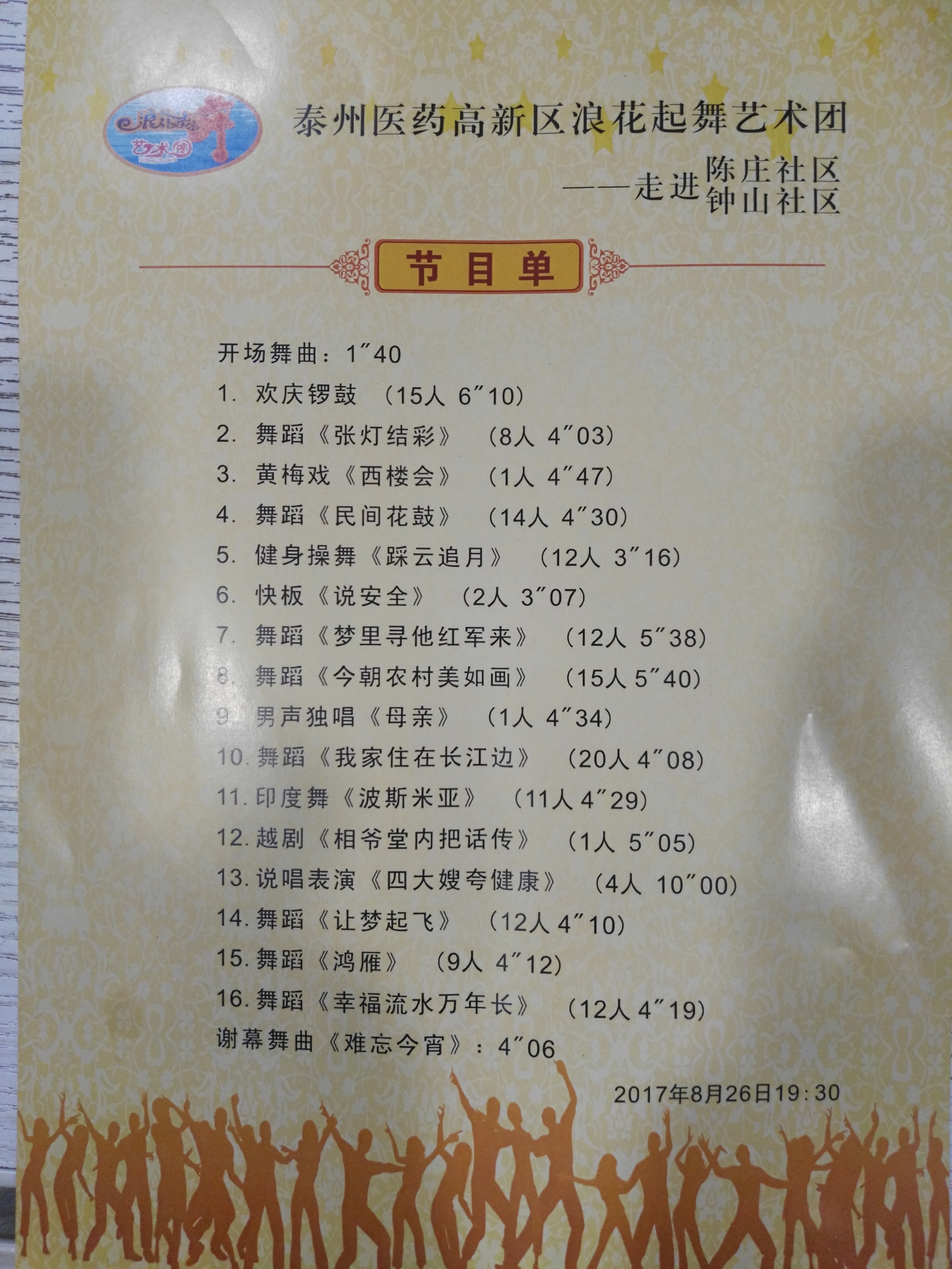 泰州医药高新区浪花起舞艺术团于2017年8月26日晚