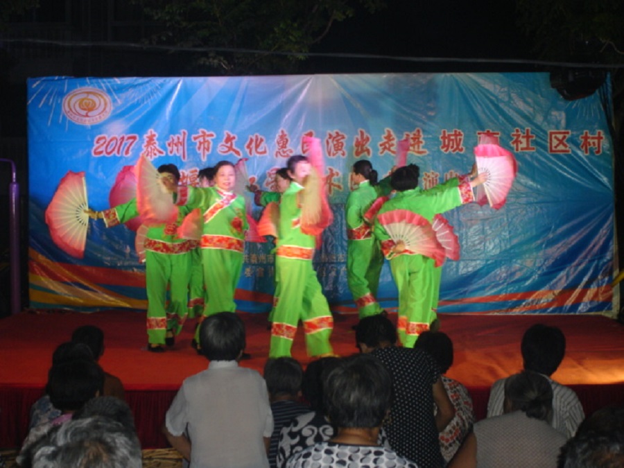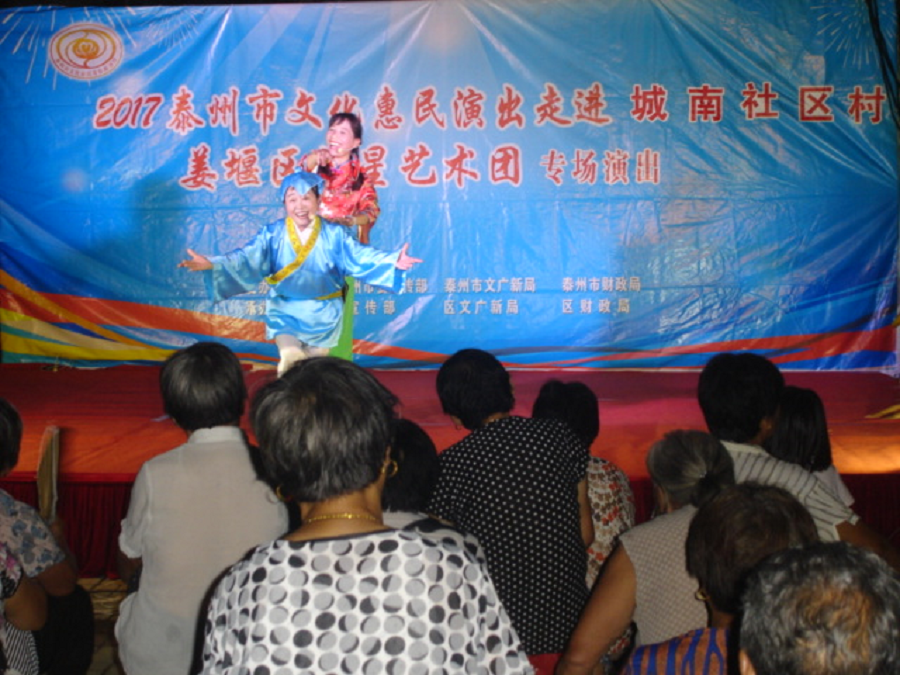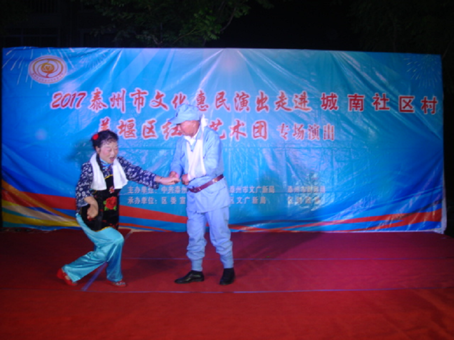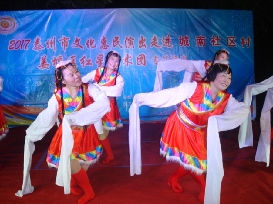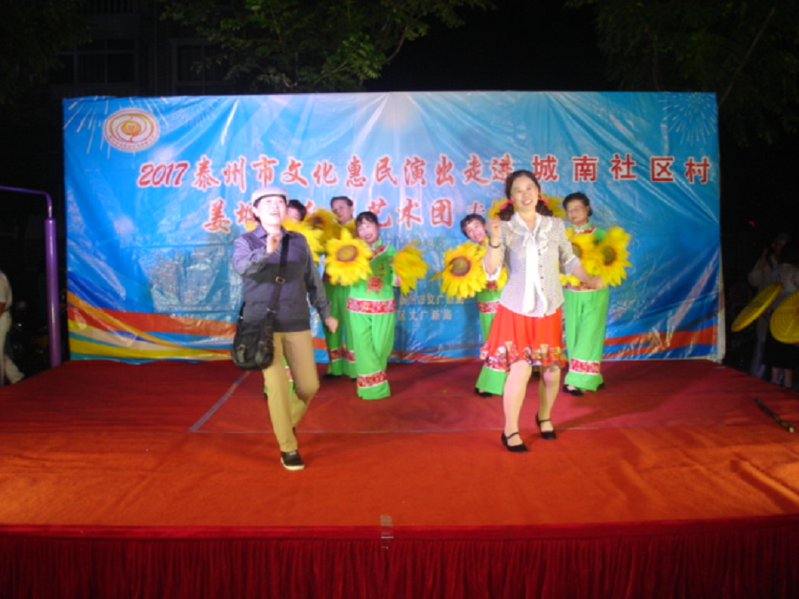 8月24号姜堰区红星艺术团被城南村邀请走进城南村表演文艺节目,7点钟不到城南村的村民们就坐满了场地,在欢乐的音乐声中演员们闪亮登场。一个个精彩的节目嬴得了热烈的掌声,得到了一致的好评。
