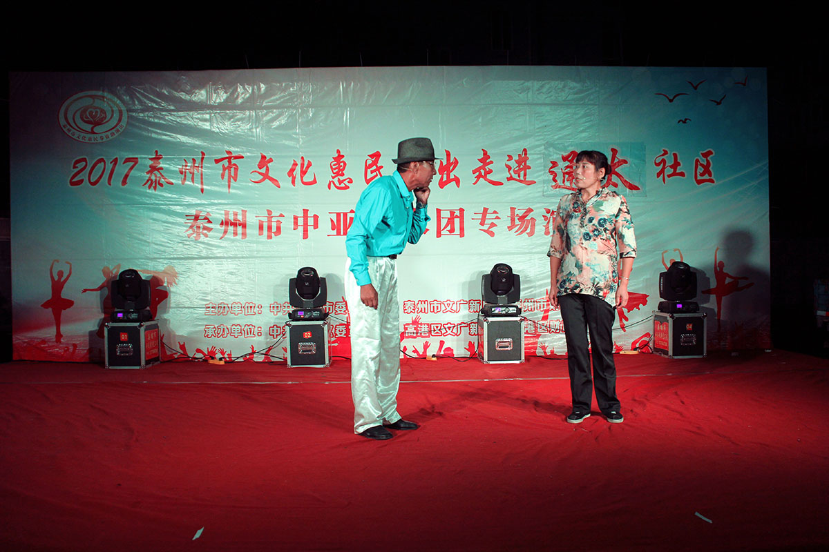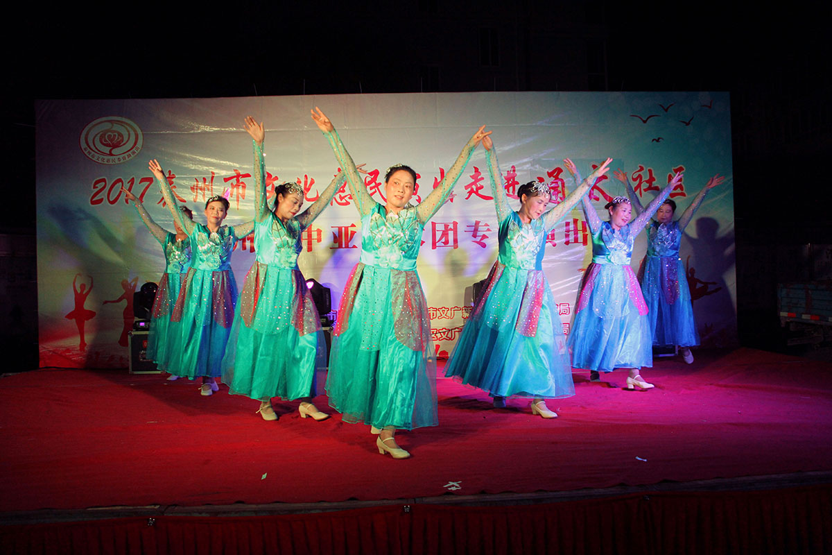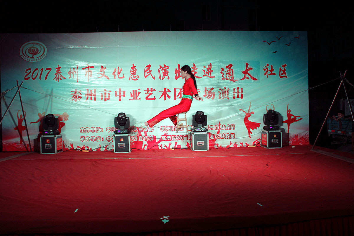 8月25日晚中亚艺术团,来到通太社区进行惠民演出,由于社区里面宣传得早,晚上7点不到,老百姓早早地来到演出现场。惠民演出围绕文明城市创建工作的总体要求和基本内容,艺术团精心编排了十多个节目。有舞蹈,独唱,魔术,方言韵白,方言小品,杂技、黄梅戏等精彩片段,演出内容丰富,节目形式多样,现场气氛热烈,观众掌声不断,活动结束后,社区民众对惠民演出给予了很好的评价和赞赏。