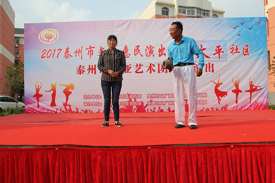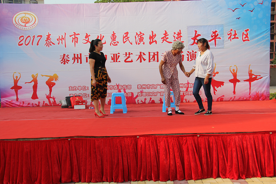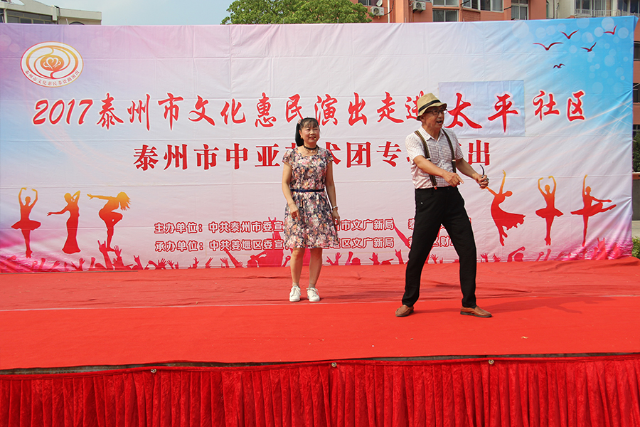 泰州中亚艺术团于2017年8月27日下午14:30走进罗塘街道太平社区进行文化惠民演出。演出在观众的热烈欢呼中拉开了帷幕,演出形式多样、有舞蹈,独唱,魔术,方言韵白,方言小品,杂技、黄梅戏等精彩片段,演出内容丰富,节目形式多样,现场气氛热烈,观众掌声不断,活动结束后,社区民众对惠民演出给予了很好的评价和赞赏。