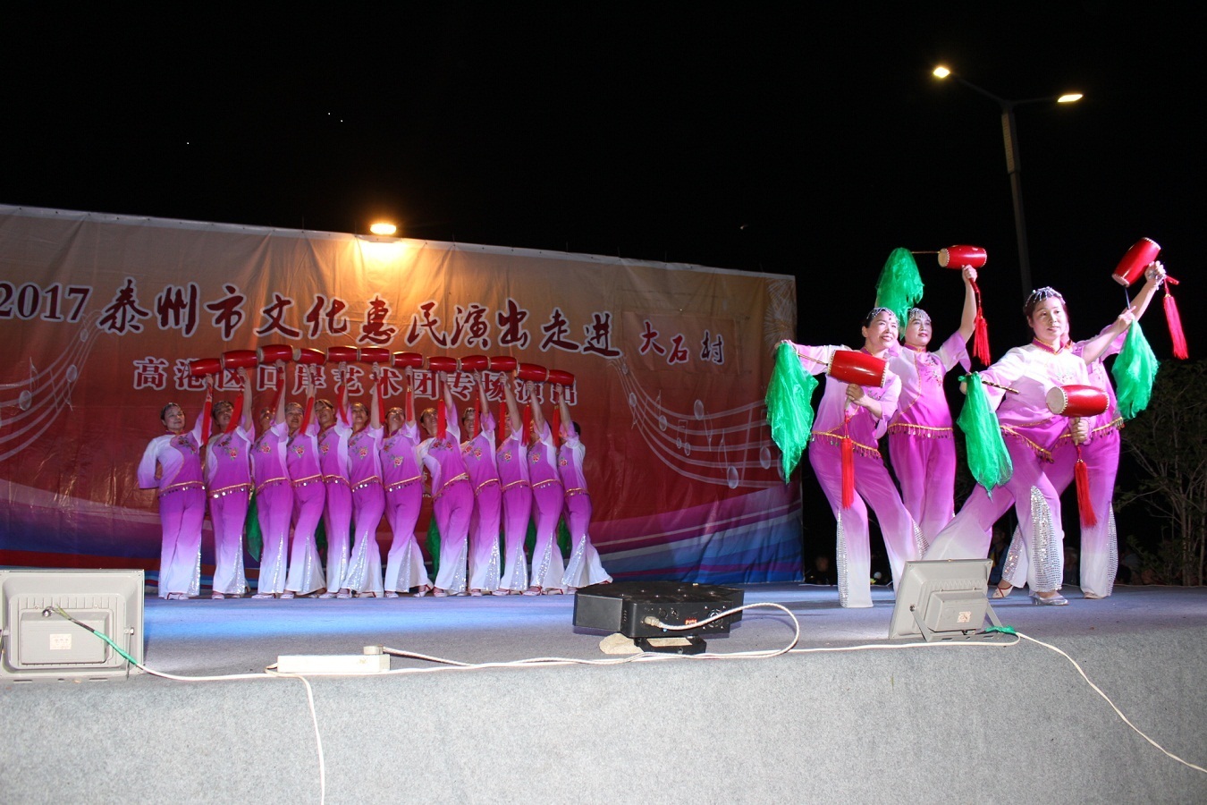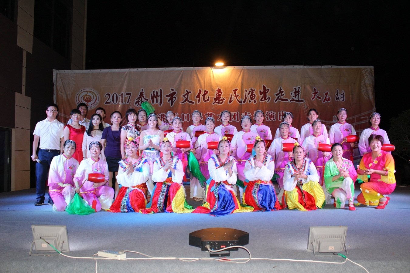 在举国上下喜迎党的十九大胜利召开之际,口岸艺术团满载着丰富多彩的综艺节目,于9月3日晚,走进了我们口岸街道大石村,这是大石人民享受公共文化服务的一个欢乐节日,也是今年泰州市文化惠民演出活动又一次在大石村的展示。