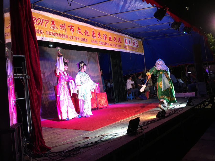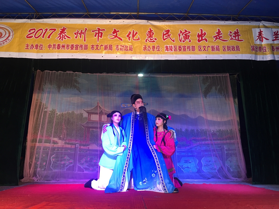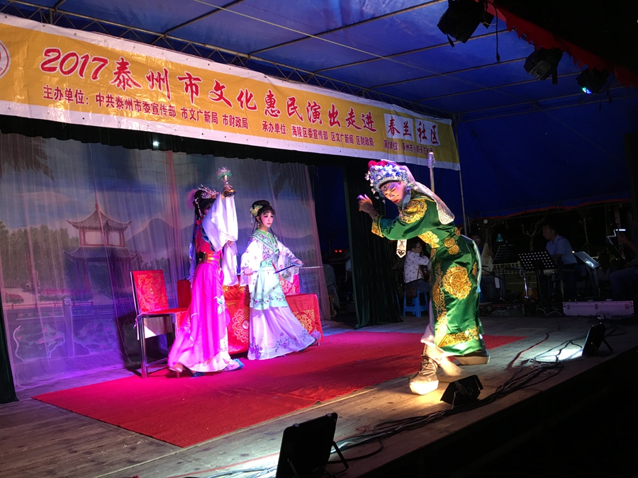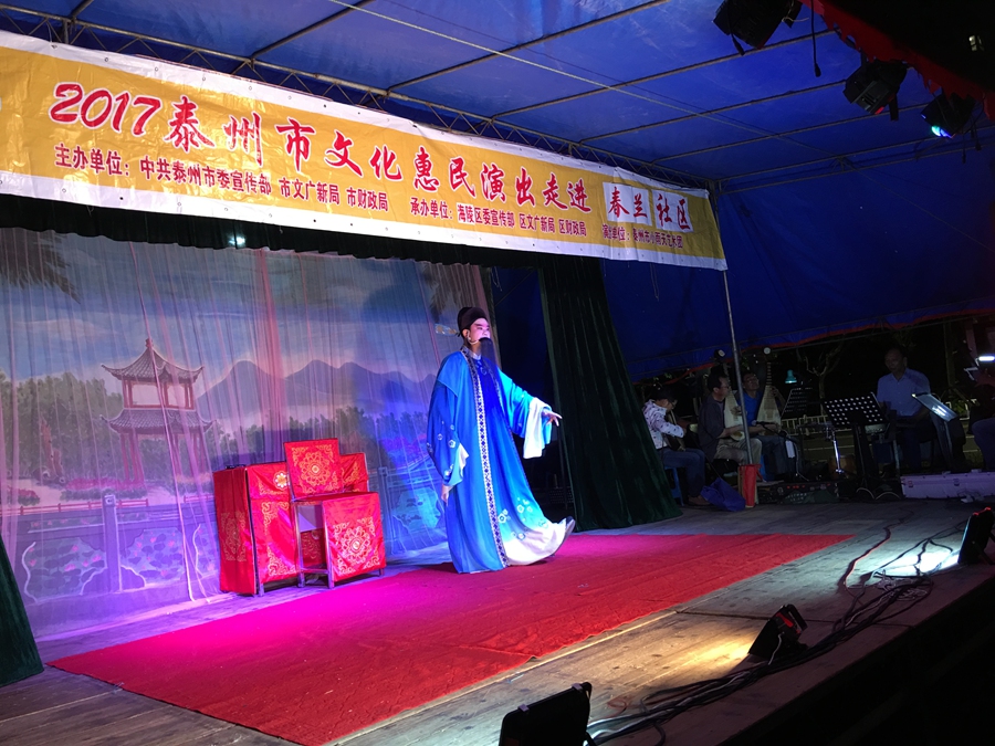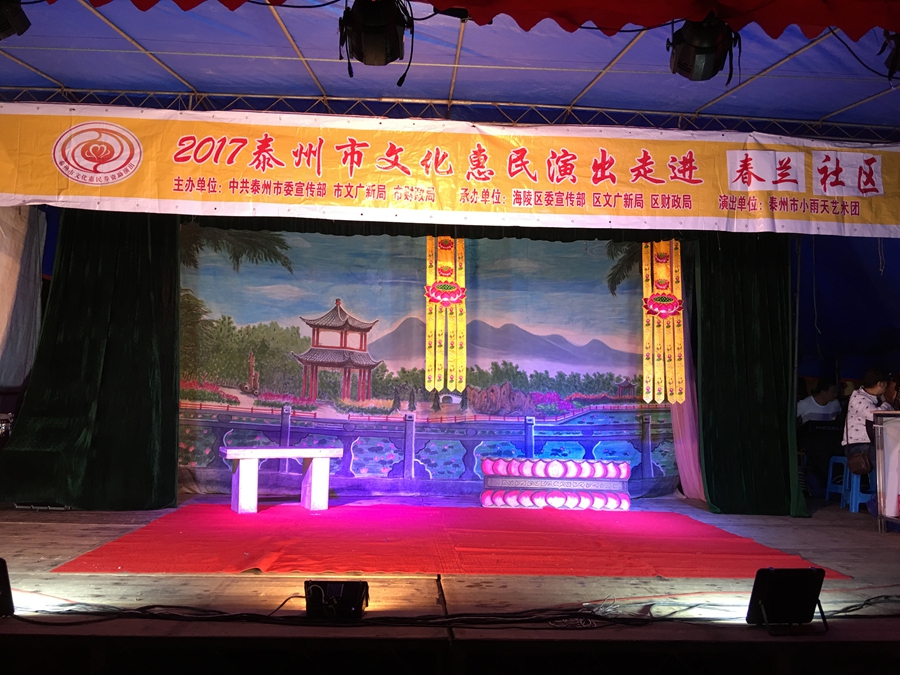 2017年月30日晚,应海陵区城东街道春兰社区邀请,小雨天艺术团走进金通梅园二期广场,为基层社区居民演出了一场经典传统扬剧全本戏《宝莲灯》。为了保证社区群众的欣赏效果,按社区领导安排,艺术团动用了戏曲演出专用舞台,下午5点,社区主要领导和小雨天艺术团就来到演出现场,为晚上的演出做好了充分准备。节目晚上正点准时开演,现场300多的社区观众看的是兴致勃勃,高潮之时的广场更是掌声雷动,很多观众都说,看到这样的正规化演出,才是感觉到了真正的文化惠民。因现场社区观众的盛情,正本演出后还添续了折子戏段加唱,整场演出持续了近3小时之多...