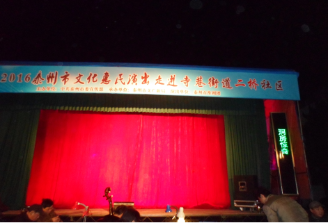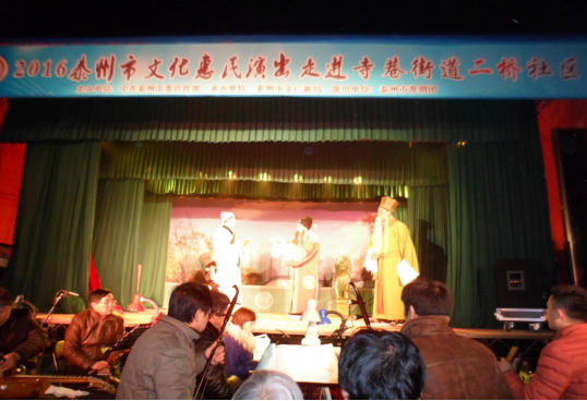2月28日泰州市淮剧团走进医药高新区寺巷街道二桥社区文化惠民演出,演出剧目《珍珠塔》获得圆满成功。深受广大群众的喜爱,观看的群众人数达千人以上。